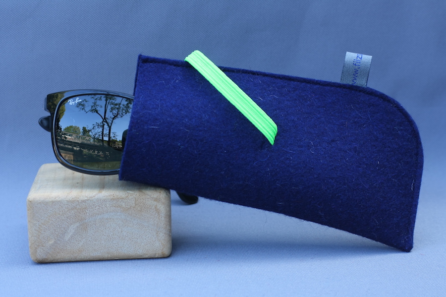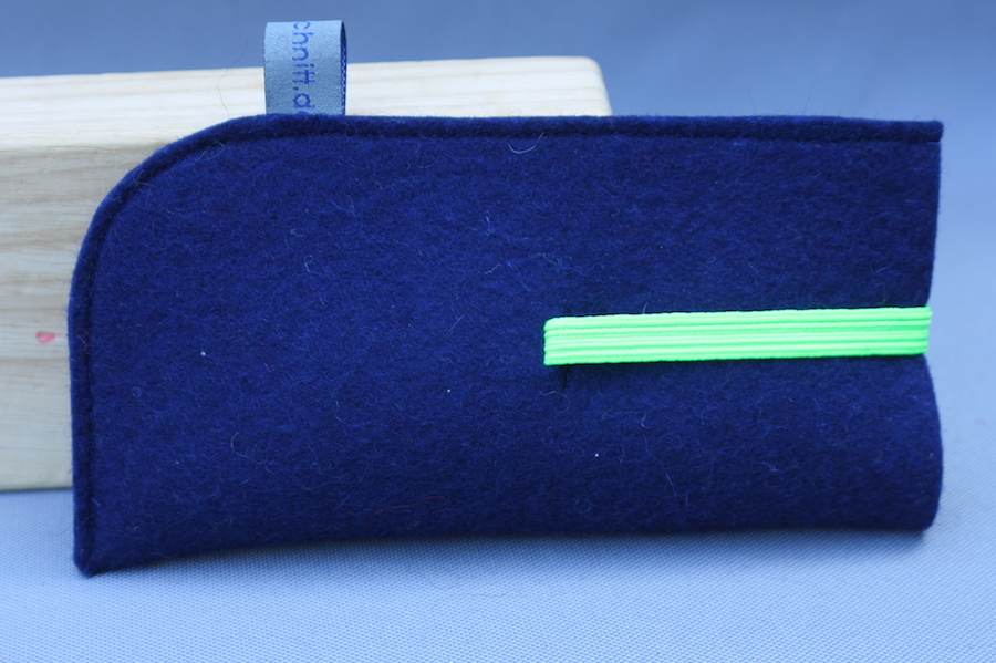 Edle Hülle für ihre Brille in dunkelblau mit einer 1 cm breiten Gummilasche zum Verschließen.