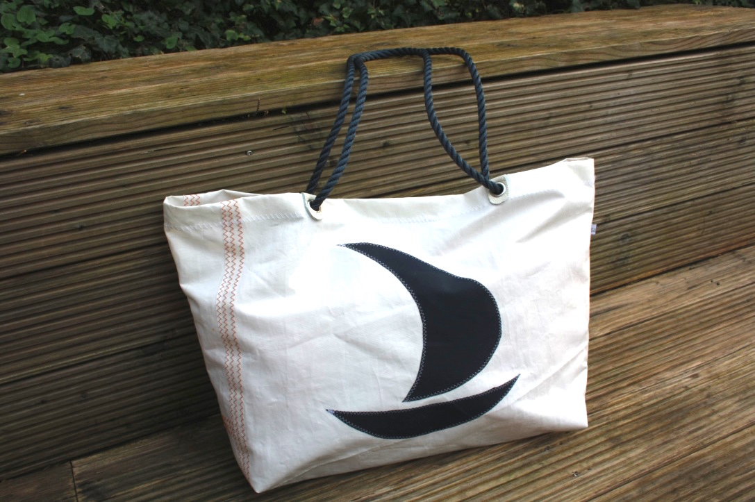 Segeltuchtasche große Beachtasche mit dunkelblauen Boot